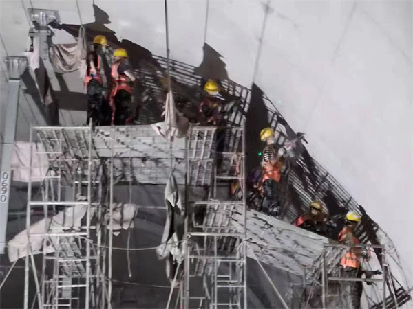 (2)在确定注浆范围后,对对地聚物注浆段范围进行标记和布孔,并对施工班组及工人做好安全、技术交底。